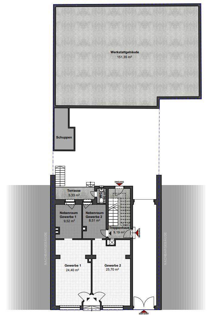 Werkstattgebäude | NF ca. 151 m² | derzeit vermietet | ja | rollstuhlgerecht | nein |